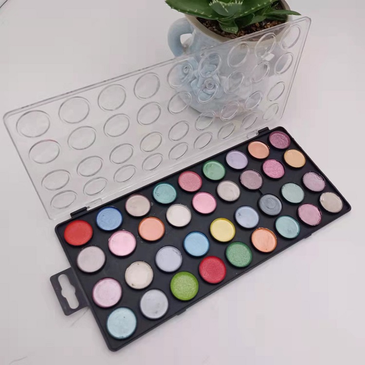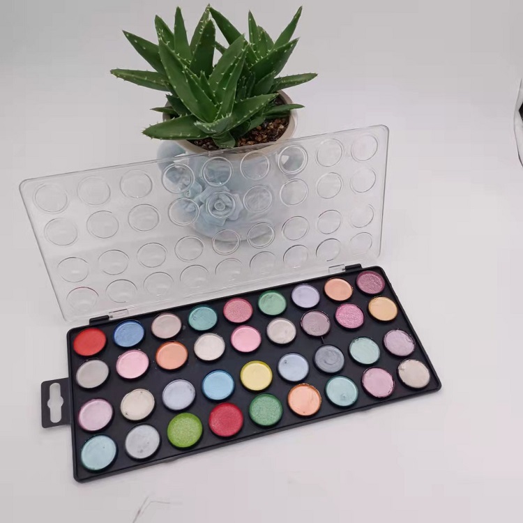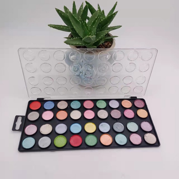 Você pode ter a certeza de comprar 36 Color Set Sparkle Watercolor de nossa fábrica. Nossa série de cores metálicas aquarela brilhantes apresenta 36 pigmentos puros e extrafinos que oferecem boa transparência, difusão, solidez à luz e saturação, tornando-os perfeitos para misturar e misturar. vem com um pincel clássico para fácil uso em qualquer lugar